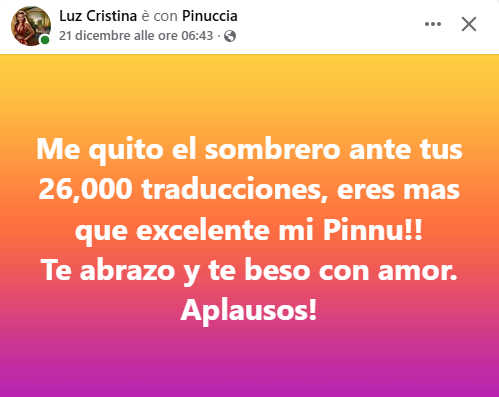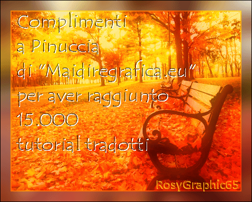 31 Dicembre 2016 Superate le 15.000 traduzioni. Grazie agli amici per le loro manifestazioni di stima, alcune di loro accompagnate da una grafica. Grazie Rosy ![]() Grazie Min@ ![]() Thank you Gerda ![]() Muchas gracias Nines ![]() Thank you Gerrie ![]() Grazie Maria ![]() Merci Virginia ![]() Grazie Shanty ![]() Grazie Imma ![]() Grazie Olimpia ![]() Muchas Gracias Misae ![]() Muchas Gracias Yedralina ![]() 18 Ottobre 2016 Un tutorial dedicato di Yedralina ![]() 9 Agosto 2016 Un tutorial dedicato di Luz Cristina ![]() 28 Luglio 2016 Un tutorial dedicato di Mineko ![]() 28 Marzo 2016 Un tutorial dedicato di An.gel ![]() 26 Febbraio 2016 Il sito www.maidiregrafica.eu compie 10 anni. ![]() Grazie Rosy ![]() 9 Febbraio 2016 Un tutorial dedicato di Nines ![]() 2 Luglio 2015 Un tutorial dedicato di Valerie Grazie Valy ![]() Le versioni degli amici qui 24 Febbraio 2015 Un tutorial dedicato di Nines Grazie Nines ![]() Le versioni degli amici qui 12 Febbraio 2015 Un tutorial dedicato di Saturnella Grazie Saturnella. ![]() 9 Febbraio 2015 Grazie Rosy ![]() Gennaio 2015 Pubblicate 12.000 traduzioni. Merci beaucoup Jo ![]() 27 Dicembre 2014 Un tutorial dedicato di Momo(Monaliza) ![]() ![]() Grazie Momo ***** 25 Novembre 2014 Un tutorial dedicato di Annie ![]() Grazie Annie ***** 1 Settembre 2014 Un tutorial dedicato di Mineko ![]() Grazie Mineko. ***** 30 Agosto 2014 Un tutorial dedicato di Zane ![]() Grazie Zane ***** Agosto 2014 un tutorial regalo di Rocky. Grazie Rocky. Le varianti delle amiche che hanno realizzato il tutorial qui Le mie versioni: ![]() ![]() ***** 16 Febbraio 2014 un tutorial dedicatomi dalla mia amica Sam. Grazie Sam. ![]() ![]() ***** 7 Febbraio 2014 Pubblicate 11.000 traduzioni Grazie Marinella ![]() Grazie Inge-Lore ![]() 5 ottobre 2013 un tutorial dedicatomi dalla cara amica Clo qui le varianti delle amiche che hanno realizzato il tutorial qui Grazie Clo, per questo bellissimo tutorial. Le mie versioni. ![]() ![]() ![]() ***** 16 settembre 2013 un tutorial dedicato da TalaNat. Grazie TalaNat ![]() 29 luglio 2013 un tutorial dedicato da Adriana. Grazie Adriana ![]() 3 novembre 2012 un tutorial dedicato da Inge-lore. Grazie Inge-Lore. ![]() 22 maggio 2012 un tutorial dedicatomi da Vero Grazie Vero ![]() 16 Gennaio 2012 in occasione delle mie 8.000 traduzioni. Grazie Rosy. ![]() 10 Gennaio 2011 un tutorial dedicatomi da Noisette. Grazie Noisette. ![]() 20 Dicembre 2010. Grazie Christa ![]() 20 Novembre 2010 in occasione delle mie 6000 traduzioni: Grazie Rosaria ![]() 18 Maggio 2010. Grazie Margarethe ![]() 8 Aprile 2010. Per i miei 5000 8 Marzo 2010 Un tutorial dedicatomi da Lea. Grazie Lea. ![]() 2 Marzo 2010 Grazie Annemarie ![]() 22 Settembre 2009 Grazie Christa ![]() 3 Ottobre 2009 per i miei primi 4000. Grazie Rosy ![]() Grazie Marinella ![]()