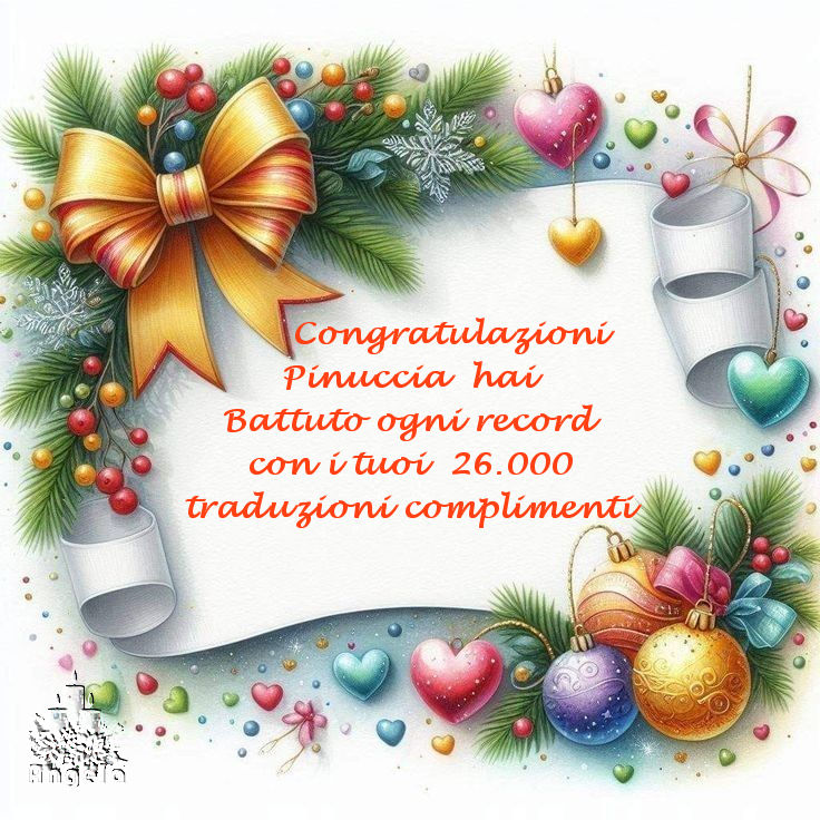 ![]() 16 Dicembre 2025 Grazie Rosy ![]() Grazie Estela ![]() Grazie Renée ![]() Grazie Manou ![]() Grazie Edith ![]() Grazie Irene ![]() Grazie Luz Cristina ![]() Grazie SimPSp ![]() Grazie Inge-Lore ![]() Grazie Siska ![]() Grazie EugeniaClo ![]() 23 Marzo 2025 Grazie Brigitte, Louise e Rosy. Il vostro apprezzamento mi onora e mi rende felice. ![]() ![]() ![]() ![]() 1 Maggio 2024 Grazie Rosy ![]() Thank you Louise ![]() Merci Renée ![]() Gracias Luz Cristina ![]() Grazie Angela ![]() 22 giugno 2023 Grazie Rosy ![]() Grazie Graziabrina ![]() 9 febbraio 2023 Grazie Tesy ![]() Dicembre 2022 Grazie Cheryl ![]() Novembre 2022 Grazie Gerrie per questo super tutorial dedicato a me e alla mia bella Italia ![]() Luglio 2022 Grazie Rosy ![]() Vielen Dank Jutta ![]() Muito obrigada querida Estela Fonseca ![]() Muchas gracias querida Yedralina ![]() Muchas gracias querida Luz Cristina ![]() ![]() Giugno 2022 Tutorial dedicato da Moi-Même ![]() Settembre 2021 ![]() Dicembre 2020 ![]() Agosto 2020 Grazie Luz Cristina ![]() 1 Gennaio 2020 Tutorial dedicato da Ceylan ![]() 22 Maggio 2019 Grazie Maria José ![]() 27 Aprile 2019 Grazie Xena ![]() Grazie Rosy ![]() 8 Aprile 2019 Tutorial dedicato da Evalynda ![]() Febbraio 2019 Grazie Cheryl ![]() Natale 2018 grazie Cheryl ![]() Tutorial dedicato da Lica Cida ![]() ![]() 31 Luglio 2018 ![]() ![]() ![]() Tutorial dedicato da Estela Fonseca ![]() 30 Maggio 2018 Tutorial dedicato da Emilieta ![]() 9 Maggio 2018 Tutorial dedicato da Lulu ![]() 23 Aprile 2018 Tutorial dedicato da Huzunlu ![]() 2 Marzo 2018 Tutorial dedicato da Libellule ![]() 2 Ottobre 2017 Superate le 16.000 traduzioni 24 Febbraio 2017 Tutorial dedicato da Harmi