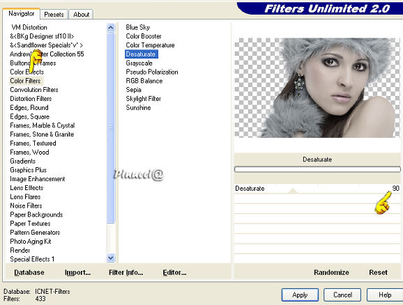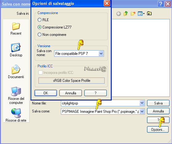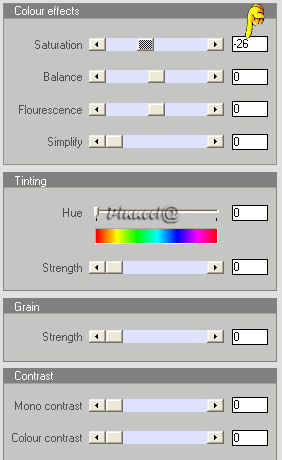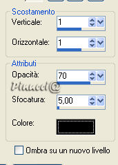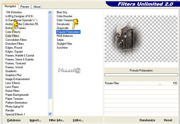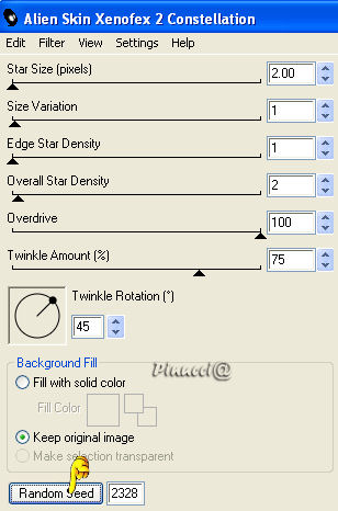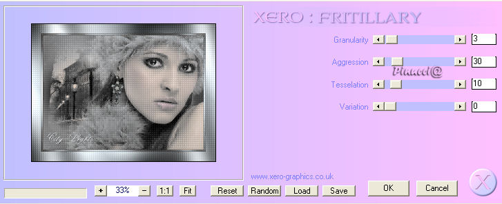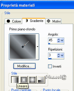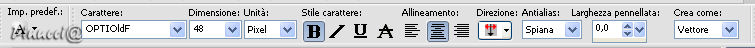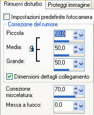 qui puoi trovare qualche risposta ai tuoi dubbi. Se l'argomento che ti interessa non è presente, ti prego di segnalarmelo. Questo tutorial è stato scritto con PSP 9, ma può essere eseguito anche con le altre versioni di PSP. Occorrente: Materiale qui Per questo tutorial ho usato tubes di Christine e Jet. Per favore, rispetta il lavoro degli autori e mantieni i tubes al loro stato originale. Filtri: FM Tile Tools qui Filters Unlimited qui Xero - Clarity qui Xero - Fritillary qui Xero - Nostalgia XL qui Graphics Plus qui Penta.com - VTR2 qui Alien Skin Xenofex 2 qui Ti servirà anche Animation Shop. qui 1. Apri una nuova immagine trasparente 700 x 500 pixels. Imposta il colore di primo piano con #969ea3, e il colore di sfondo con #3c3c3d. Passa il colore di primo piano a Gradiente di primo piano/sfondo, con i seguenti settaggi: ![]() Riempi l'immagine trasparente con il gradiente.Regola>Sfocatura>Sfocatura gaussiana, raggio 50. ![]() Regola>Aggiungi/rimuovi disturbo>Aggiungi disturbo: ![]() 2. Apri il tube "chrismist_citylight", e vai a Modifica>Copia. Torna al tuo lavoro e vai a Modifica>Incolla>Incolla come nuovo livello. Sposta il tube a sinistra, contro il bordo.Effetti>Plugins>FM Tile Tools - Blend Emboss, con i settaggi standard. ![]() Effetti>Plugins>Filters Unlimited 2.0 - Color Filters - Pseudo Polarization, con i settaggi standard. ![]() Regola>Correzione fotografica>Rimozione disturbo fotocamera digitale. se stai usando PSP X: Regola>Correzione disturbo fotocamera digitale: ![]() 3. Apri il tube "Jet-face01-decmeber-2007", e vai a Modifica>Copia. Torna al tuo lavoro e vai a Modifica>Incolla>Incolla come nuovo livello. Immagine>Ridimensiona, al 97%, tutti i livelli non selezionato. Sposta il tube a destra.Effetti>Plugins>Filters Unlimited 2.0 - Color Filters - Desaturate, 90. ![]() 4. Livelli>Unisci>Unisci tutto. Effetti>Plugins>Xero - Nostalgia: ![]() ![]() Questo è il settaggio del nuovo filtro Nostalgia, rilasciato l'8 dicembre 2007 (che trovi nello zip allegato al tutorial). Se usi la vecchia versione, questi sono i settaggi: ![]() 5. Attiva lo strumento Testo ![]() Imposta il colore di sfondo con #ebf0f3 (oppure #d5cfcb). Seleziona il font OptioldF con i seguenti settaggi: ![]() l'esempio riguarda PSP X, se stai usando PSP 9, dovrai regolare il settaggio delle dimensioni, perchè nelle due versioni i pixels non corrispondono. Vedi alcuni appunti sull'argomento qui Livelli>Converti in livello raster. Effetti>Effetti 3D>Sfalsa ombra, con i seguenti settaggi, colore nero. ![]() 6. Immagine>Aggiungi bordatura, 1 pixel, simmetriche, con il colore #241c16. Immagine>Aggiungi bordatura, 7 pixels, simmetriche, con il colore #969ea3. Seleziona questo bordo con la bacchetta magica ![]() ![]() Effetti>Plugins>Graphics Plus - Cross Shadow, con i settaggi standard. ![]() Effetti>Plugins>Penta.com - VTR2, con i settaggi standard. ![]() Immagine>Aggiungi bordatura, 1 pixel, simmetriche, con il colore #241c16. 7. Immagine>Aggiungi bordatura, 40 pixels, simmetriche, con il colore bianco. Seleziona questo bordo con la bacchetta magica ![]() ![]() Cambia le impostazioni del gradiente, mettendo la spunta a Inverti. ricordati che hai cambiato il colore di sfondo per scrivere il testo. Riportalo al colore iniziale #3c3c3d. Riempi la selezione con il gradiente.Effetti>Plugins>Graphics Plus - Cross Shadow, con i settaggi standard. Effetti>Plugins>Xero - Clarity, con i settaggi standard: ![]() Effetti>Plugins>Xero - Fritillary: ![]() Selezione>Nessuna selezione. 8. Selezione>Seleziona tutto. Selezione>Modifica>Contrai, di 20 pixels. Livelli>Nuovo livello raster. Riempi con il colore #969ea3.Selezione>Modifica>Contrai, di 7 pixels. Premi sulla tastiera il tasto CANC ![]() Selezione>Nessuna selezione. 9. Effetti>Plugins>Graphics Plus - Cross Shadow, con i settaggi standard. Effetti>Plugins>Penta.com - VTR2, con i settaggi standard. Effetti>Effetti 3D>Sfalsa ombra, con i settaggi precedenti. ![]() Se vuoi, questo è il momento di aggiungere il tuo nome e/o il tuo watermark. 10. Livelli>Unisci>Unisci tutto. ![]() 11. Attiva lo strumento Selezione a mano libera ,e seleziona l'orecchino della donna. Livelli>Duplica, per 2 volte. Posizionati sul primo livello. Effetti>Plugins>Alien Skin Xenofex 2 - Constellation, dopo aver impostato i settaggi, clicca su Random Seed: ![]() Posizionati sulla prima copia e ripeti l'Effetto Constellation, con gli stessi settaggi, ma cliccando ancora su Random Seed. Posizionati sulla seconda copia e ripeti l'Effetto Constellation, cliccando su Random Seed. Selezione>Nessuna selezione. Salva il file in formato pspimage, assicurandoti che sia compatibile con PSP 7: ![]() Apri Animation Shop e il file che hai appena salvato. Controlla il risultato cliccando su Visualizza e salva in formato gif.![]() Se hai problemi o dubbi, o trovi un link non funzionante, o anche soltanto per un saluto, scrivimi. 16 Gennaio 2008 |