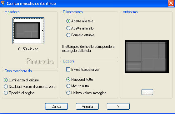 Cerca e carica la maschera "0.159- wicked", con i seguenti settaggi: