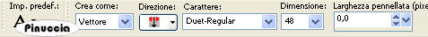 ![]() 7. Attiva il livello superiore. Imposta il colore di sfondo con il motivo oro fornito con il tutorial: ![]() 8. Attiva lo strumento Testo ![]() Seleziona il font "Duet-Regular", con i seguenti settaggi: ![]() dovrai regolare la dimensione a seconda del testo e della versione di PSP che stai usando Scrivi il tuo testo e posizionalo. Livelli>Converti in livello raster. Effetti>Effetti 3D>Sfalsa ombra: ![]() 9. Livelli>Unisci>Unisci tutto. Immagine>Aggiungi bordatura, 3 pixels, simmetriche, con il colore bianco. Seleziona il bordo bianco con la bacchetta magica ![]() ![]() Riempi la selezione con il motivo oro.Selezione>Nessuna selezione. 10. Immagine>Aggiungi bordatura, 30 pixels, simmetriche, con il colore bianco. Seleziona il bordo con la bacchetta magica ![]() Imposta il colore di primo piano con il Motivo "Patroon Happy Holidays": ![]() Riempi la selezione con questo motivo.Effetti>effetti 3D>Ritaglio: ![]() Selezione>Nessuna selezione. Aggiungi la tua firma e salva in formato jpg. ![]() Se hai problemi o dubbi, o trovi un link non funzionante, o anche soltanto per un saluto, scrivimi. 19 Dicembre |
