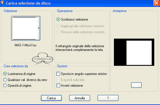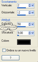 qui puoi trovare qualche risposta ai tuoi dubbi. Se l'argomento che ti interessa non č presente, ti prego di segnalarmelo. I bei tubes di questo tutorial sono di Mariel. Materiale qui Metti i pennelli nella cartella pennelli, il gradiente nella cartella gradienti, la selezione nella cartella selezioni Se hai dei dubbi qui forse trovi alcune risposte. Se non č cosė, per favore, scrivimi. Apri i tubes in PSP. Apri una nuova immagine trasparente 750 x 610. Imposta il colore di primo piano sul nero e il colore di sfondo sul Gradiente: clicca sul triangolo a fianco del box per aprire il menų cerca e seleziona il gradiente Snakeback: ![]() Riempi l'immagine con il gradiente.Apri Snakeraster e vai a Modifica>Copia. Torna al tuo lavoro e vai a Modifica>Incolla>Incolla come nuovo livello. Livelli>Nuovo livello raster. Selezione>Carica/Salva selezione>Carica selezione da disco: cerca e carica la selezione Mas-1-missyou. ![]() Cambia i settaggi del gradiente: ![]() Riempi la selezione con il gradiente.Effetti>Plugins>EyeCandy 4 - Bevel Boss, con i seguenti settaggi: ![]() Selezione>Nessuna selezione. Sposta il rettangolo in alto a sinistra. vedi come esempio la tag finale. Effetti>Effetti 3D>Sfalsa ombra, con i seguenti settaggi: ![]() Attiva lo strumento Pennello ![]() e cerca il pennello BC-brush10. Applicalo due volte sul lato sinistro del rettangolo, con il colore nero. Apri la rosa e vai a Modifica>Copia. Torna al tuo lavoro e vai a Modifica>Incolla>Incolla come nuovo livello. Sposta il tube a sinistra in basso, con lo stelo sul bordo del rettangolo.Effetti>Effetti 3D>Sfalsa ombra, con i settaggi precedenti. Apri il tube del viso e vai a Modifica>Copia. Torna al tuo lavoro e vai a Modifica>Incolla>Incolla come nuovo livello e spostalo a destra.Effetti>Effetti 3D>Sfalsa ombra, con i settaggi precedenti. Attiva il livello con il quadrato. Attiva lo strumento Pennello ![]() cerca e seleziona il pennello missm-lyrics001. Applicalo due volte sul quadrato sopra e sotto. Livelli>Unisci>Unisci tutto. Immagine>Aggiungi bordatura, 20 pixels, simmetriche, con un qualsiasi colore, non presente nell'immagine. Seleziona il bordo con la bacchetta magica ![]() Riempi la selezione con il gradiente.Effetti>Plugins>Eye Candy 4000 - Bevel Boss, con i settaggi precedenti. Effetti>Effetti 3D>Sfalsa ombra, con i settaggi precedenti. Selezione>Nessuna selezione. Attiva nuovamente lo strumento Pennello ![]() e seleziona il pennello HBGbrush-old207 005. Applicalo sul bordo inferiore. Cambia la rotazione del pennello a 90 gradi ![]() e applica il pennello sul lato sinistro del bordo. Cambia la rotazione a 180 e applica il pennello sul lato superiore.Ancora una volta cambia la rotazione a 270 gradi e applica il pennello sul lato destro.Aggiungi il tuo nome o il tuo watermark. ![]() Se hai problemi o dubbi, o trovi un link non funzionante, o anche soltanto per un saluto, scrivimi. Novembre 2006 |