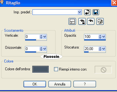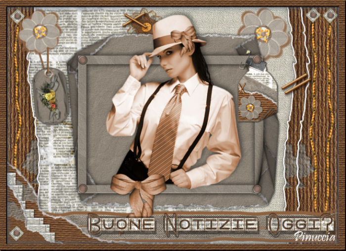 qui puoi trovare qualche risposta ai tuoi dubbi. Se l'argomento che ti interessa non è presente, ti prego di segnalarmelo. Questo tutorial è stato scritto in PSP 8.1, ma può essere eseguito anche con le altre versioni di PSP. Per questo tutorial è stato usato uno Scrap Kit di Gwyngrafica, qui Materiale (tube e font) qui Il tube è di Suzi Sgai Attenzione: Tutti i livelli dei tubes sono chiusi. Apri il tube e lo scrap kit in PSP. Per visualizzare i livelli: Livelli>Visualizza>Tutto, ma ti consiglio di visualizzare, di volta in volta, soltanto il livello interessato. 1. Apri una nuova immagine trasparente 700 x 500 pixels. 2. Livelli>Nuovo livello raster. Selezione>Seleziona tutto. Attiva il kit gwyn_kit23. Posizionati sul livello Raster 3 e vai a Modifica>Copia. Torna al tuo lavoro e vai a Modifica>Incolla>Incolla nella selezione. Selezione>Nessuna selezione. 3. Attiva gwyn_kit23, posizionati sul livello Raster 1 e vai a Modifica>Copia. Torna al tuo lavoro e vai a Modifica>Incolla>Incolla come nuovo livello. Immagine>Ridimensiona, al 75%, tutti i livelli non selezionato. Ripeti Immagine>Ridimensiona, all'85%, tutti i livelli non selezionato. Spostalo a sinistra.Con lo strumento Deformazione spingilo giù e verso sinistra.se stai usando PSP X, strumento Puntatore ![]() Potrai spostarlo ancora più tardi, se necessario. 4. Attiva gwyn_kit23, posizionati sul livello Raster 2 e vai a Modifica>Copia. Modifica>Incolla>Incolla come nuova IMMAGINE. Immagine>Ruota>Ruota per gradi, 90 gradi a destra, tutti i livelli selezionato. ![]() Effetti>Plugins>I.C. Net Software Filters Unlimited 2 - Square Edges - Edges Square 12. Modifica>Copia. Torna al tuo lavoro e vai a Modifica>Incolla>Incolla come nuovo livello. Spostalo sulla destra.5. Selezione>Seleziona tutto. Selezione>Mobile. Selezione>immobilizza. Selezione>Modifica>Seleziona bordature selezione: ![]() Selezione>Modifica>Sfuma, 3 pixels. ![]() Riempi la selezione con il colore bianco #ffffff, clicca due volte per riempire.Selezione>Nessuna selezione. Effetti>Effetti 3D>Sfalsa ombra, con i seguenti settaggi, colore nero: ![]() 6. Livelli>Duplica. Immagine>Rifletti e spostalo a a sinistra, rendendo visibile un piccolo pezzo. Immagine>Duplica. Immagine>Rifletti. Spostalo a destra, in modo che rimanga visibile solo una piccola parte.Questo è quello che approssimativamente dovresti avere. Ricorda che più tardi, prima di unire i livelli, se necessario potrai spostare ancora i vari pezzi che compongono lo scrap. ![]() 7. Attiva gwyn_kit23, posiziona il livello Raster 6 e vai a Modifica>Copia. Torna al tuo lavoro e vai a Modifica>Incolla>Incolla come nuovo livello. Immagine>Ruota per gradi, 90 gradi a destra, tutti i livelli non selezionato. ![]() Spostalo su una striscia laterale.Livelli>Duplica, 2 volte, e posizionali sopra l'altra striscia (vedi il mio esempio).![]() 8. Attiva gwyn_kit23, posizionati sul livello Raster 15 e vai a Modifica>Copia. Torna al tuo lavoro e vai a Modifica>Incolla>Incolla come nuovo livello. Spostalo in basso.9. Effetti>Effetti 3D>Sfalsa ombra, con i seguenti settaggi, colore #8D6241. ![]() Ripeti l'Effetto Sfalsa ombra, ma cambiando verticale a -7. 10. Attiva gwyn_kit23, posizionati sul livello Raster 13 e vai a Modifica>Copia. Torna al tuo lavoro e vai a Modifica>Incolla>Incolla come nuovo livello. Immagine>Ridimensiona, al 65%, tutti i livelli non selezionato. Posizionalo nell'angolo in basso a sinistra.Con lo strumento Deformazione "stringilo" un po' in basso.11. Livelli>Duplica, e spostalo un po' giù, deformando l'angolo (vedi il mio esempio).![]() quando vuoi usare lo strumento per deformare (non per allargare o stringere), quando agisci sui punti vettori devi tenere premuto il tasto shift (maiuscola) 12. Posizionati sul livello originale dell'angolo, che deve essere il livello attivo. 13. Attiva gwyn_kit23, posizionati sul livello Raster 1 e vai a Modifica>Copia. Modifica>Incolla>Incolla come nuova IMMAGINE. Con lo strumento Selezione , rettangolo, seleziona uno dei quadrati del giornale.Questo sotto è un esempio. Naturalmente, puoi selezionare qualsiasi altro rettangolo. ![]() Modifica>Copia. Torna al tuo lavoro e vai a Modifica>Incolla>Incolla come nuovo livello. Immagine>Ridimensiona, al 35%, tutti i livelli non selezionato. Con lo strumento Deformazione spingilo nella tasca in basso a sinistra.14. Effetti>Effetti 3D>Sfalsa ombra, con i seguenti settaggi, colore nero. ![]() Ripeti l'Effetto Sfalsa ombra, ma cambiando verticale e orizzontale a -1. 15. Livelli>Duplica, e ripeti per quante volte vuoi, e con lo strumento Deformazione rimpicciolisci i pezzetti di giornale per adattarli al taschino e sistemali più o meno come nel mio esempio.16. Ritorna al livello superiore. Attiva gwyn_kit23, posizionati sul livello Raster 14 e vai a Modifica>Copia. Torna al tuo lavoro e vai a Modifica>Incolla>Incolla come nuovo livello. Immagine>Ridimensiona, al 75%, tutti i livelli non selezionato. Spostalo un po' in alto.Effetti>Effetti 3D>Sfalsa ombra, con i seguenti settaggi, colore nero. ![]() 17. Attiva gwyn_kit23, posizionati sul livello Raster 4 e vai a Modifica>Copia. Torna al tuo lavoro e vai a Modifica>Incolla>Incolla come nuovo livello. Immagine>Ridimensiona, al 75%, tutti i livelli non selezionato. Posizionalo sopra il livello precedente (vedi il mio esempio).Effetti>Effetti 3D>Sfalsa ombra, con i seguenti settaggi, colore nero. ![]() Ripeti l'Effetto Sfalsa ombra, ma cambiando verticale e orizzontale a -4. 18. Attiva il tube SS_1867, e vai a Modifica>Copia. Torna al tuo lavoro e vai a Modifica>Incolla>Incolla come nuovo livello. Immagine>Ridimensiona, una volta al 75%, e una volta all'85%, tutti i livelli non selezionato. Posizionala sopra la cornice con una parte della donna e la manica sul fondo della stessa.19. Con lo strumento Selezione a mano libera , da punto a punto,traccia una selezione sul fondo della cornice, intorno alla cravatta e alla mano. per facilitare il lavoro abbassa momentaneamente l'opacità d