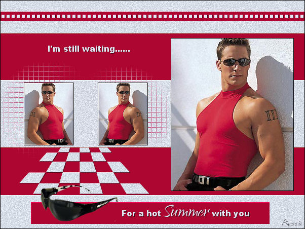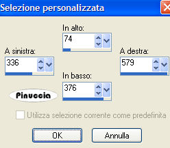 qui puoi trovare qualche risposta ai tuoi dubbi. Se l'argomento che ti interessa non è presente, ti prego di segnalarmelo. Questo tutorial è stato scritto con PSP 9, ma può essere eseguito anche con le altre versioni di PSP. Materiale qui Filtro FM Tile Tools qui 1, Apri l'immagine Mickgerda. Questa immagine, che non è vuota ma contiene le selezioni del canale alfa, sarà la base del tuo lavoro. Imposta il colore di primo piano con il colore rosso #b50438, e riempi l'immagine con questo colore.Sullo stesso livello: Selezione>Carica/Salva selezione>Carica selezione da canale alfa: carica la selezione mickgerda1: ![]() Riempi la selezione con il colore #e2e9f4.Regola>Aggiungi/rimuovi disturbo/aggiungi disturbo: ![]() Selezione>Nessuna selezione. Effetti>Plugins>FM Tile Tools - Blend Emboss, con i settaggi standard. ![]() 2. Apri l'immagine Hunk 53. Immagine>Ridimensiona, a 300 pixels di altezza. Immagine>Aggiungi bordatura, 1 pixel, simmetriche, con il colore nero. Modifica>Copia. Torna al tuo lavoro. Livelli>Nuovo livello raster. Attiva lo strumento Selezione ![]() selezione personalizzata , con i seguenti settaggi:![]() Modifica>Incolla>Incolla nella selezione. Selezione>Nessuna selezione. 3. Livelli>Duplica. Immagine>Rifletti. Immagine>Ridimensiona, per 4 volte all'80%, tutti i livelli non selezionato. Sposta l'immagine a sinistra.Livelli>Duplica. Immagine>Rifletti. Sistema le due immagini come mostrato nella schermata sotto:![]() Attiva il livello inferiore. Livelli>Nuovo livello raster. Imposta il colore di primo piano con il colore chiaro (#e2e9f4). Attiva lo strumento Pennello ![]() cerca e seleziona il pennello Susan e applicalo sull'immagine cliccando tre volte con il tasto sinistro del mouse. ![]() l'esempio mostra il pennello prima di cliccare con il mouse per applicarlo, perchè, essendo sul livello inferiore, dopo l'applicazione lo vedrai sotto le immagini. Cambia la modalità di miscelatura di questo livello in Scurisci. Effetti>Effetti 3D>Sfalsa ombra, con i seguenti settaggi, con il colore rosso #b50438. ![]() Livelli>Duplica. Immagine>Rifletti. Sposta il pennello accanto al precedente, vedi l'esempio finale.Nella paletta dei livelli chiudi tutti i livelli tranne i livelli del pennello. Attiva uno dei due livelli e vai a Livelli>Unisci>Unisci visibile. Attiva tutti i livelli: Livelli>Visualizza>Tutto. Nella paletta dei livelli attiva il livello del pennello (uniti). Attiva lo strumento gomma ![]() e cancella le parti del pennello tra le due immagini piccole e sotto di queste: ![]() Livelli>Unisci>Unisci visibile. 4. Livelli>Nuovo livello raster. Imposta il colore di primo piano con il colore chiaro (#e2e9f4). Cerca il pennello gerdatekst192 e applicalo sull'immagine in alto: ![]() Effetti>Effetti 3D>Sfalsa ombra, con i seguenti settaggi, colore nero: ![]() 5. Chiudi il colore di primo piano, e imposta come colore di sfondo il colore chiaro. Attiva lo strumento Forme predefinite ![]() cerca e seleziona la forma Gerdablok4 e, usando il tasto sinistro del mouse, "disegnala" come mostrato nell'esempio: ![]() Regola>Aggiungi/rimuovi disturbo/Aggiungi disturbo: ![]() Effetti>Plugins>FM Tile Tools - Blend Emboss, con i settaggi standard. Effetti>effetti 3D>Sfalsa ombra, con i seguenti settaggi, colore nero: ![]() 6. Livelli>Nuovo livello raster. Selezione>Carica/Salva selezione>Carica selezione da canale alfa. Cerca e carica la selezione Mickgerda2 e riempila con il colore rosso (#b50438).Effetti>Plugins>FM Tile Tools - Blend Emboss, settaggi standard. Livelli>Nuovo livello raster. Selezione>Carica/Salva selezione>Carica selezione da canale alfa: cerca e carica la selezione mickgerda3, e riempila con il colore rosso (#b50438).Effetti>Plugins>FM Tile Tools - Blend Emboss, settaggi standard. Livelli>Unisci>Unisci visibile. ![]() 7. Imposta il colore di primo piano con il colore chiaro. Livelli>Nuovo livello raster. Cerca il pennello gerdatekst193 e applicalo a destra nella striscia in basso. Effetti>Effetti 3D>Sfalsa ombra, con i seguenti settaggi, colore nero: ![]() Apri il tube zonnebrilgerda3 e vai a Modifica>Copia. Torna al tuo lavoro e vai a Modifica>Incolla>Incolla come nuovo livello. Spostalo sulla striscia in basso, a sinistra.(vedi l'esempio finale). Imposta il colore di sfondo con il colore chiaro. Attiva lo strumento Testo , crea come vettore,seleziona il font Arial Black (standard in Windows), dimensione 18, e digita il punto (.......) continuamente, in modo da riempire la striscia superiore. ![]() Effetti>Effetti 3D>Sfalsa ombra, con i seguenti settaggi, colore nero. ![]() Aggiungi il tuo watermark o il tuo nome. Livelli>Unisci>Unisci tutto. Immagine>Aggiungi bordatura, 1 pixel, simmetriche, con il colore nero. Salva in formato jpg. ![]() Se hai problemi o dubbi, o trovi un link non funzionante, o anche soltanto per un saluto, scrivimi 6 Marzo 2007 |