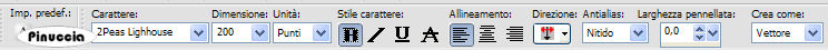font 2Peas Lighthouse, colore di sfondo bianco, con i seguenti settaggi: