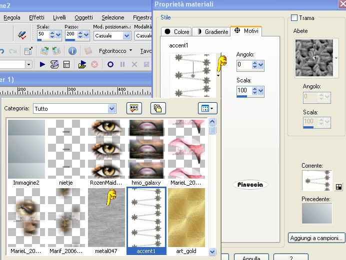 e seleziona la trama "Metal047", angolo 0, scala 100: