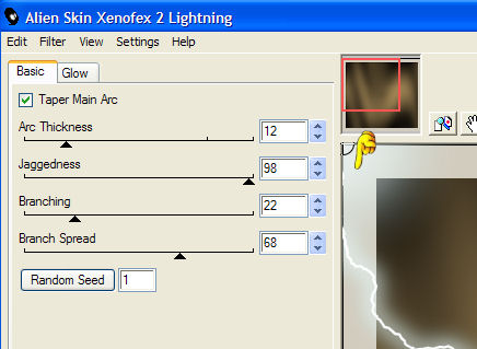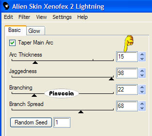 Effetti>Plugins>Alien Skin Xenofex 2 - Lightning e cambia Arc thickness a 18.