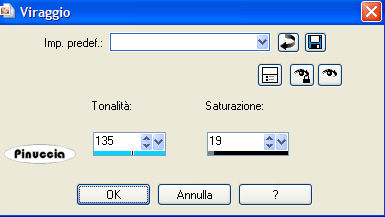 Regola>Tonalità e saturazione>Viraggio, con i settaggi precedenti.