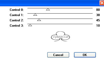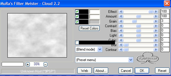 4. Effetti>Plugins>Mura's Meister / Cloud, con i seguenti settaggi: