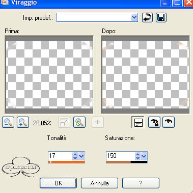 27. Regola>Luminosità e contrasto>Viraggio, con i seguenti settaggi: