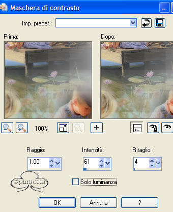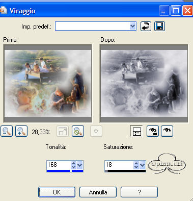 Regola>Luminosità e contrasto>Viraggio, con i seguenti settaggi: