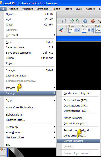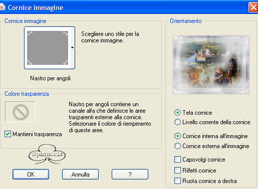 25. Immagine>Cornice immagine>Nastro per angoli, con i seguenti settaggi: