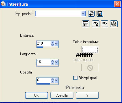 Effetti>Effetti di trama>Intessitura, con i seguenti settaggi: