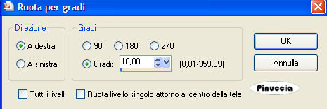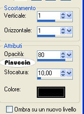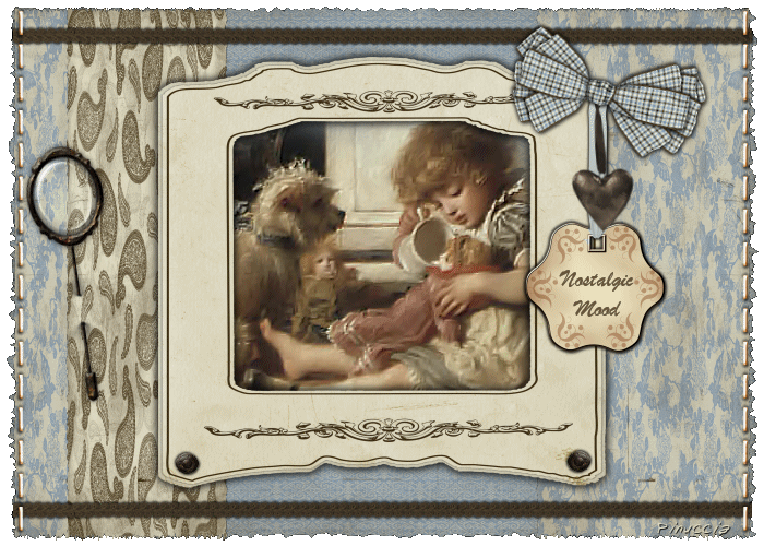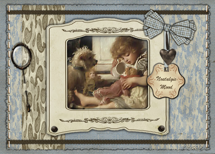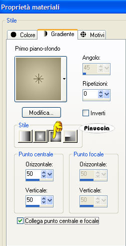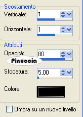 1. Apri una nuova immagine trasparente 400 x 350 pixels. Imposta il colore di primo piano con #d9d0b1 e il colore di sfondo con #958c6c. Passa il colore di primo piano a Gradiente di primo piano/sfondo, stile sprazzo di luce: ![]() 2. Apri il tube "MOT - children32", e vai a Modifica>Copia. Torna al tuo lavoro e vai a Modifica>Incolla>Incolla come nuovo livello. Effetti>FM Tile Tools - Blend Emboss, con i settaggi standard: ![]() Regola>Correzione fotografica>Rimozione disturbo fotocamera digitale. se stai usando PSP X: Regola>Rimozione disturbo fotocamera digitale. 3. Livelli>Unisci>Unisci tutto. Metti da parte questa immagine per il momento. 4. Apri una nuova immagine trasparente 700 x 500 pixels. Selezione>Seleziona tutto. Apri l'immagine "achtergrond_01", e vai a Modifica>Copia. Torna al tuo lavoro e vai a Modifica>Incolla>Incolla nella selezione. Selezione>Nessuna selezione. Effetti>Plugins>Filters Unlimited2 - Edges, Square - Square Edge 17. Effetti>Effetti 3D>Sfalsa ombra, con i seguenti settaggi: ![]() Ripeti l'Effetto Sfalsa ombra, ma cambiando verticale e orizzontale a -1. 5. Apri l'immagine "achtergrond_02". Effetti>Plugins>Filters Unlimited2 - Edges Square - Square Edge 17. Modifica>Copia. Torna all'immagine 700 x 500 e vai a Modifica>Incolla>Incolla come nuovo livello. Sposta l'immagine a sinistra, facendolo combaciare con il bordo frastagliato.![]() Livelli>Duplica. Immagine>Rifletti. 6. Apri "achtergrond_03". Effetti>Plugins>Filters Unlimited2 - Edges Square - Square Edge 17. Modifica>Copia. Torna al tuo lavoro e vai a Modifica>Incolla>Incolla come nuovo livello. Sposta l'immagine a sinistra, come mostrato nell'esempio.![]() 7. Attiva l'immagine che hai messo da parte prima. Modifica>Copia. Ritorna al tuo lavoro e vai a Modifica>Incolla>Incolla come nuovo livello. Se hai cominciato dal passo 4: Apri il tube "MOT - children32", e vai a Modifica>Copia. Torna al tuo lavoro e vai a Modifica>Incolla>Incolla come nuovo livello. Effetti>FM Tile Tools - Blend Emboss, con i settaggi standard. Regola>Correzione fotografica>Rimozione disturbo fotocamera digitale. Apri "NM-Frame" e vai a Modifica>Copia. Torna al tuo lavoro e vai a Modifica>Incolla>Incolla come nuovo livello. Sposta la cornice sopra l'immagine dei bambini.Effetti>Effetti 3D>Sfalsa ombra, con i seguenti settaggi: ![]() Ripeti l'Effetto Sfalsa ombra, ma cambiando verticale e orizzontale a -1. 8. Apri "NM-Ribbon" e vai a Modifica>Copia. Torna al tuo lavoro e vai a Modifica>Incolla>Incolla come nuovo livello. Sposta la striscia in alto, vedi l'esempio.Effetti>Effetti 3D>Sfalsa ombra, con i seguenti settaggi: ![]() Ripeti l'Effetto Sfalsa ombra, ma cambiando verticale e orizzontale a -1. Livelli>Duplica. Immagine>Capovolgi. ![]() 9. Apri "NM-Bred" e vai a Modifica>Copia. Torna al tuo lavoro e vai a Modifica>Incolla>Incolla come nuovo livello. Spostalo in basso a sinistra all'interno della cornice della fotografia.Effetti>Effetti 3D>Sfalsa ombra, con gli ultimi settaggi usati. Livelli>Duplica. Spostalo a destra.10. Apri "NM-Label" e vai a Modifica>Copia. Torna al tuo lavoro e vai a Modifica>Incolla>Incolla come nuovo livello. Spostalo in alto a destra della cornice.Effetti>Effetti 3d>Sfalsa ombra, con i settaggi precedenti. 11. Apri "NM-Bow" e vai a Modifica>Copia. Torna al tuo lavoro e vai a Modifica>Incolla>Incolla come nuovo livello. Immagine>Ruota>Ruota per gradi, 16 gradi a destra. ![]() Spostalo a destra, sopra l'etichetta.Effetti>Effetti 3D>Sfalsa ombra, con i seguenti settaggi: ![]() Ripeti l'Effetto Sfalsa ombra, ma cambiando verticale e orizzontale a -1. Regola>Messa a fuoco>Maschera di contrasto: ![]() 12. Apri "NM-Pin" e vai a Modifica>Copia. Torna al tuo lavoro e vai a Modifica>Incolla>Incolla come nuovo livello. Immagine>Ruota>Ruota per gradi, 8 gradi a sinistra. ![]() Spostalo a sinistra, come mostrato sotto.![]() Regola>Messa a fuoco>Maschera di contrasto, con i settaggi precedenti. 13. Apri "NM-Heart" e vai a Modifica>Copia. Torna al tuo lavoro e vai a Modifica>Incolla>Incolla come nuovo livello. Nella paletta dei livelli sposta questo livello sotto quello del nastro. Immagine>Ruota>Ruota per gradi, 5 gradi a sinistra. ![]() 14. Nella paletta dei livelli attiva il livello superiore. Apri "NM-Stitching" e vai a Modifica>Copia. Torna al tuo lavoro e vai a Modifica>Incolla>Incolla come nuovo livello. Sposta la cucitura a sinistra.Livelli>Duplica. Immagine>Rifletti. 15. Aggiungi un testo o il tuo nome sull'etichetta. 16. Livelli>Unisci>Unisci tutto. Puoi salvare il tuo lavoro in formato gif, per mantenere lo sfondo trasparente, come l'esempio sotto il titolo, oppure in formato jpg, aggiungendo uno sfondo, Per seguire l'esempio sotto. Apri il file "Achtergrond01" e su questo incolla il tuo lavoro. ![]() ![]() Se hai problemi o dubbi, o trovi un link non funzionante, o anche soltanto per un saluto, scrivimi. 16 Marzo 2007 |