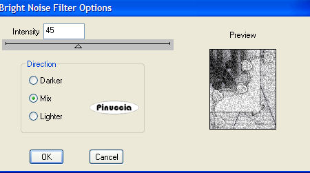 Attiva il livello superiore e ripeti Effetti>Plugins>Dsb Flux - Bright Noise, cambiando Intensity a 65.