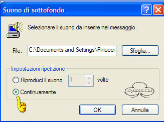 Qui devi scegliere se vuoi che la riproduzione del suono sia continua,