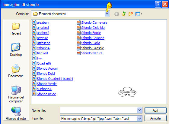 Di default ti apparirā la cartella Elementi decorativi di Windows.