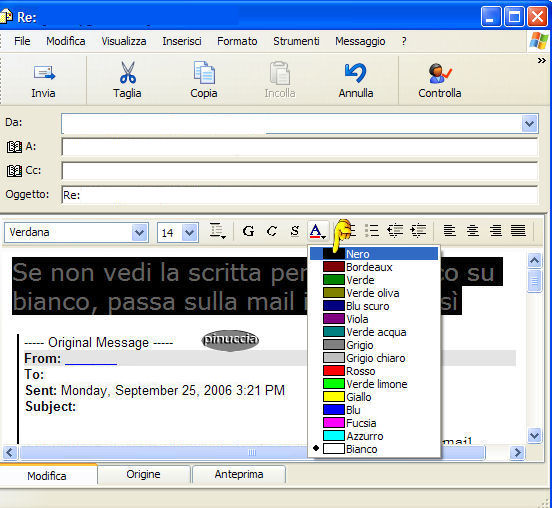Clicca su rispondi e, nel corpo del messaggio, seleziona la parte bianca.