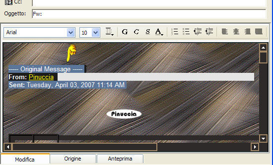 Avendo fatto inoltra, apparirà l'indirizzo del mittente.