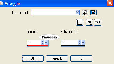 Regola>Saturazione e tonalità>Viraggio, con i settaggi a 0.