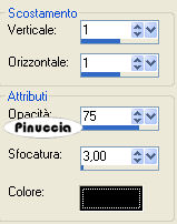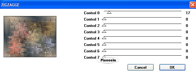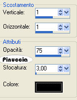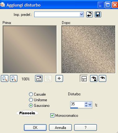 qui puoi trovare qualche risposta ai tuoi dubbi. Se l'argomento che ti interessa non è presente, ti prego di segnalarmelo. Questo tutorial è stato scritto in PSP 9, ma può essere eseguito anche con le altre versioni di PSP. Per tradurlo, l'ho eseguito con PSP X. Materiale qui Per questo tutorial ho usato tubes di Carola, Patry, MarieL, Marif e Suzi Sgai. Rispetta il lavoro degli autori e lascia i tubes al loro stato originale. Filtri: FM Tile Tools - Blend Emboss qui Xero - Porcelain qui Sybia - Zigzagge qui Bordermania qui 1. Apri una nuova immagine trasparente 600 x 450 pixels. Imposta il colore di primo piano con #2f3f4a, e il colore di sfondo con #cbb69e. Passa il colore di primo piano a gradiente lineare, con i seguenti settaggi: ![]() Riempi l'immagine con questo gradiente.Regola>Sfocatura>Sfocatura gaussiana, raggio 8. Livelli>Duplica. Regola>Aggiungi/rimuovi disturbo>Aggiungi disturbo: ![]() 2. Effetti>Effetti tecniche di disegno>Pennellate, con i seguenti settaggi, colore #583434 ![]() 3. Livelli>Nuovo livello raster. Selezione>Seleziona tutto. 4. Apri il tube "MarieL_2006_09Septembre_smoke08t". Posizionati sul livello del tube e vai a Modifica>Copia. Torna al tuo lavoro e vai a Modifica>Incolla>Incolla nella selezione. Cambia la modalità di miscelatura di questo livello in Luminanza (esistente) e abbassa l'opacità al 22%. Selezione>Nessuna selezione. 5. Apri il tube "CarolaMists_Objects_174". Posizionati sul livello del tube e vai a Modifica>Copia. Torna al tuo lavoro e vai a Modifica>Incolla>Incolla come nuovo livello. Spostalo in alto a destra.Cambia la modalità di miscelatura di questo livello in Luce Netta e abbassa l'opacità al 56%. 6. Apri il tube "PatryMists_06_Flowers_103". Posizionati sul livello del tube e vai a Modifica>Copia. Torna al tuo lavoro e vai a Modifica>Incolla>Incolla come nuovo livello. Spostalo in basso a destra.Cambia la modalità di miscelatura di questo livello in Filtra. Livelli>Duplica. Cambia la modalità di miscelatura di questo livello in Moltiplica e abbassa l'opacità al 48%. ![]() 7. Apri il tube "SS_977_Misted". Posizionati sul livello del tube e vai a Modifica>Copia. Torna al tuo lavoro e vai a Modifica>Incolla>Incolla come nuovo livello. Spostalo a sinistra.8. Effetti>Plugins>FM Tile Tools - Blend Emboss: ![]() Regola>Correzione fotografica>Rimuovi disturbo fotocamera digitale. (se stai usando PSP X: Regola>Rimozione disturbo fotocamera digitale. 9. Livelli>Duplica. 10. Livelli>Unisci>Unisci tutto. Effetti>Plugins>Xero - Porcelain: ![]() Ancora Effetti>Plugins>Xero - Porcelain, ![]() 11. Selezione>Seleziona tutto. Effetti>Effetti 3D>Ritaglio, con i seguenti settaggi, colore nero: ![]() Selezione>Nessuna selezione. 12. Immagine>Aggiungi bordatura, 1 pixel, simmetriche, con il colore #393832. Immagine>Aggiungi bordatura, 7 pixels, simmetriche, con il colore #8a6f52. Effetti>Effetti 3D>Sfalsa ombra, con i seguenti settaggi: ![]() Ripeti l'Effetto Sfalsa ombra, ma cambiando verticale e orizzontale a -1. Immagine>Aggiungi bordatura, 1 pixel, simmetriche, con il colore #393832. 13. Immagine>Aggiungi bordatura, 15 pixels, simmetriche, con il colore bianco. Seleziona il bordo con la bacchetta magica , sfumatura 0.Imposta il colore di primo piano con #cbb69e, e il colore di sfondo con #2f3f4a. Passa il colore di primo piano a gradiente lineare, con i seguenti settaggi: ![]() Riempi la selezione con questo gradiente.14. Effetti>Plugins>Sybia - Zigzagge, con i settaggi standard. ![]() Selezione>Innalza selezione a livello. Immagine>Capovolgi. Immagine>Rifletti. Selezione>Nessuna selezione. 15. Attiva lo strumento selezione , rettangolo,e seleziona la parte mostrata nella schermata sotto: (dall'angolo in basso a destra fino all'angolo in alto a sinistra): ![]() Premi sulla tastiera il tasto CANC. 16. Selezione>Seleziona tutto. Selezione>Modifica>Contrai, di 35 pixels. Selezione>Inverti. 17. Effetti>Effetti 3D>Sfalsa ombra, con i seguenti settaggi, colore nero. ![]() Ripeti l'Effetto Sfalsa ombra, ma cambiando verticale e orizzontale a -2. 18. Livelli>Unisci>Unisci tutto. Effetti>Plugins>Bordermania - Frame #2: ![]() 19. Attiva lo strumento Testo ![]() Chiudi il colore di primo piano, e imposta il colore di sfondo con #a48155. Io ho usato il font Aurora script, con i seguenti settaggi: ![]() (la misura dei pixel varia a seconda della versione di PSP). Scrivi il tuo testo e posizionalo. Livelli>Converti in livello raster. Effetti>Effetti 3D>Sfalsa ombra: ![]() Cambia la modalità di miscelatura di questo livello in Filtra. Livelli>Duplica. Cambia la modalità di miscelatura della copia in Luminanza. Per chi ha PSP 9 o PSP X, il tutorial finisce qui. Per chi usa PSP11, un ulteriore passaggio: 20. Effetti>Effetti foto - Pellicola e filtri, con i seguenti settaggi: ![]() Aggiungi il tuo watermark o il tuo nome e, se vuoi, ridimensiona l'immagine. Salva in formato jpg. ![]() Se hai problemi o dubbi, o trovi un link non funzionante, o anche soltanto per un saluto, scrivimi. Gennaio 2007 |