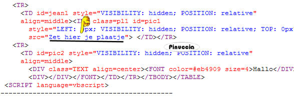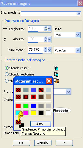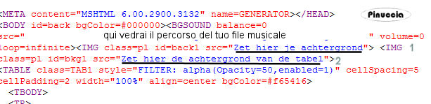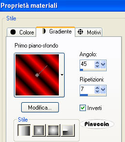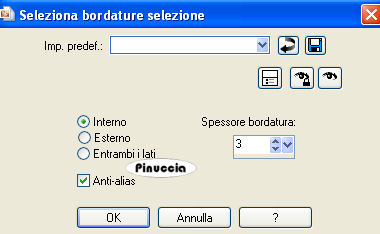 e cancella attentamente i piccoli puntini rosso sul bordo nero.![]() 14. Clicca con la bacchetta magica sul bordo rosso.15. Effetti>Plugins>Greg's Factory Output - Poolshadow, con i settaggi standard. ![]() 16. Selezione>Modifica>Seleziona bordature selezione: ![]() 17. Livelli>Nuovo livello raster. Riempi con il colore di primo piano.Selezione>Nessuna selezione. 18. Effetti>Plugins>Screenworks - Close Knit. Regola>Messa a fuoco>Metti a fuoco. 19. Livelli>Unisci>Unisci visibile. 20. Livelli>Duplica. 21. Immagine>Ridimensiona, al 77%, tutti i livelli non selezionato. 22. Livelli>Unisci>Unisci tutto. 23. Apri il tube del fiore "SinTubes-RedLily" e vai a Modifica>Copia. Torna al tuo lavoro e vai a Modifica>Incolla>Incolla come nuovo livello. Posiziona il fiore nell'angolo in basso a sinistra.24. Livelli>Unisci>Unisci tutto. L'immagine è finita. Se vuoi realizzare lo script, ti occorrono anche due immagini di sfondo. Sotto un esempio con un altro colore. ![]() Indicazioni per gli sfondi: Questo è quello che ho fatto io. Naturalmente, puoi scegliere di creare altri sfondi, o cambiare le impostazioni come preferisci. Crea un gradiente con i colori del tutorial. ![]() Apri un'immagine 100x100, clicca con il tasto destro del mouse sulla paletta del colore, e ti apparirà la schermata con la tua paletta dei materiali. Clicca sul gradiente e avrai l'immagine con il gradiente. ![]() Salva in formato .jpg come sfondo1. Per il secondo sfondo apri un'immagine nera 100x100 e salva in formato .jpg come sfondo2. Per eseguire lo script Apri lo script di Jeannette che trovi qui, e segui i preliminari descritti alla fine di questo tutorial, fino all'inserimento dello sfondo-suono. Dopo aver inserito lo sfondo-suono, dovrai indicare allo script dove trovare le immagini. Clicca su Origine e identifica i punti di inserimento dei vari elementi dello script. Se hai messo tutti i file in una cartella, il percorso del suono ti servirà da guida per l'inserimento degli altri files: ti basterà cambiare l'ultima parte: il nome e l'estensione. Nella schermata sotto sono indicati i punti in cui dovrai inserire, tra le virgolette, il percorso delle due immagini di sfondo. 1. Qui inserisci il primo sfondo. 2. Qui inserisci il secondo sfondo che servirà per le tabelle. ![]() Nella schermata sotto è indicato il punto in cui dovrai inserire il percorso dell'immagine principale. ![]() Ricorda che, contemporaneamente, puoi controllare il risultato andando su Anteprima. fai molta attenzione alle estensioni dei files e alle maiuscole-minuscole, che devono essere corrette, altrimenti lo script non troverà le immagini da inserire Clicca adesso sulla linguetta Modifica, per aggiungere il testo. clicca due volte all'interno del riquadro. Apparirà la cornice che ti dà il via libera per sostituire il testo esistente e aggiungere il tuo. Quando hai finito, clicca all'esterno e la cornice sparirà. Il tuo messaggio con lo script è pronto per il tasto Invia. Se non vuoi spedirlo e vuoi soltanto tenerlo per te, vai a File>Salva con nome e mettilo in una cartella a tua scelta. Ricordati, però, che quando vorrai rivedere lo script, i files devono trovarsi nello stesso posto. Se nel frattempo li avrai spostati, vedrai soltanto delle crocette rosse. Avvertimento: non devi preoccuparti se in Modifica non vedrai il messaggio come dovrebbe essere (per fare questo devi andare in Anteprima). Ricorda ancora che per inviare il messaggio ti devi posizionare su Modifica. ![]() Se hai problemi o dubbi, o trovi un link non funzionante, o anche soltanto per un saluto, scrivimi. 25 Giugno 2007 |