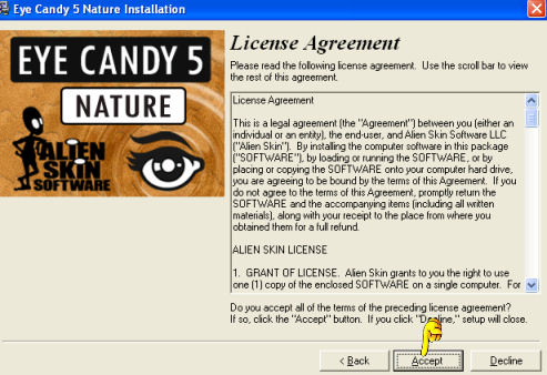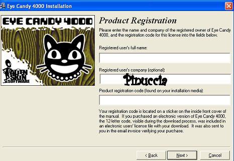 Le schermate che si presenteranno dopo aver cliccato sull'icona del file di installazione sono le stesse di Eye Candy 3 Special Edition (vedi sopra).
