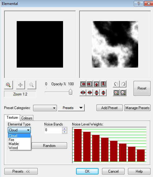 La sequenza delle finestre e la procedura è la stessa di Eye Candy - Nature (vedi la scheda sotto).