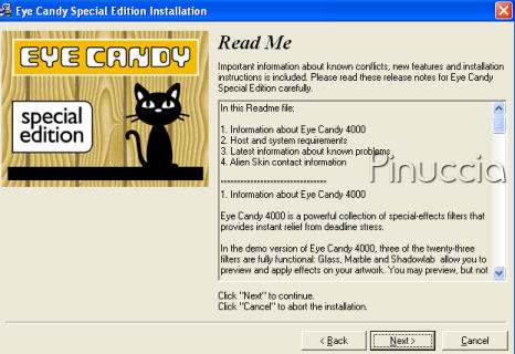 Questa versione di Eye Candy 3.1, chiamata Special Edition, in realtà installa la versione Demo di Eye Candy 4000.