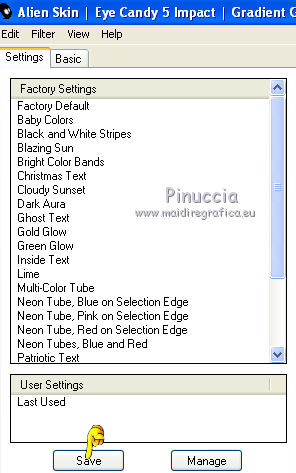 Pertanto, allo stesso modo puoi salvare settaggi che hai realizzato e che vuoi conservare in memoria.