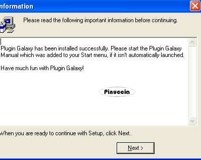 La successiva finestra ti informa che l'installazione si è conclusa e ti invita a consultare il manuale del filtro. Next