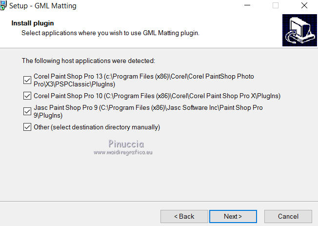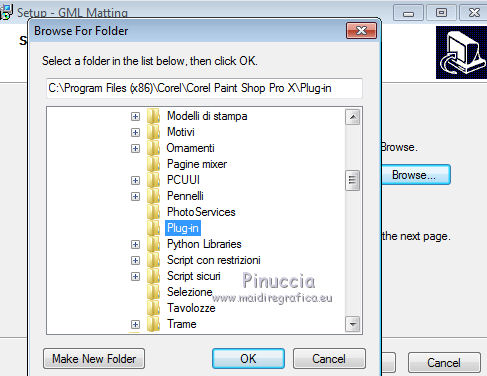 Nell'esempio ho scelto cartella Plugin di Corel X