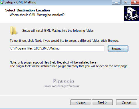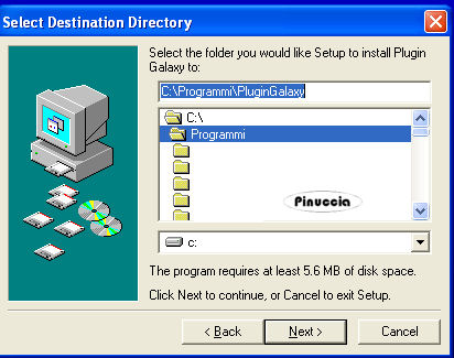 Richiesta di selezionare la cartella in cui dovrà essere installato il filtro.