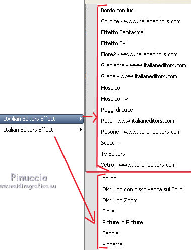 Dopo aver scompattato la cartella e indicato il percorso al vostro programma, nella lista dei filtri, li trovate alla lettera "I", ma divisi: