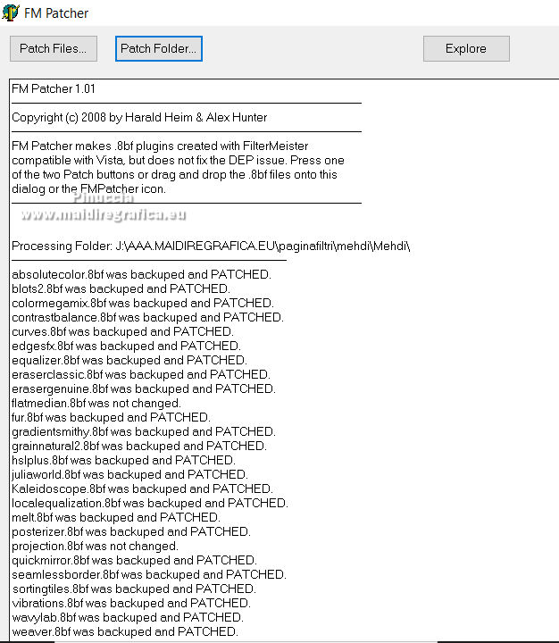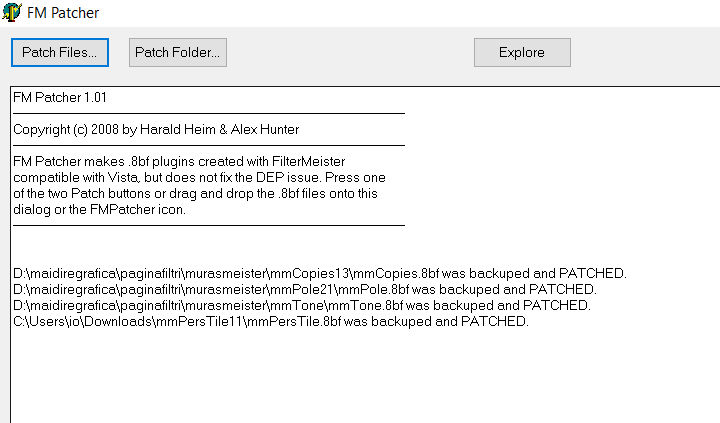 ma rimanda un messaggio di errore nei codici di Filter Meister, usati per la creazione della patch