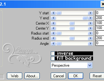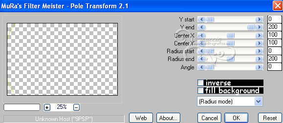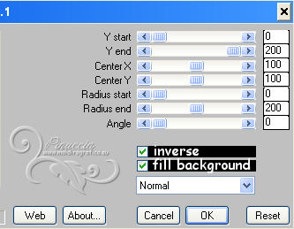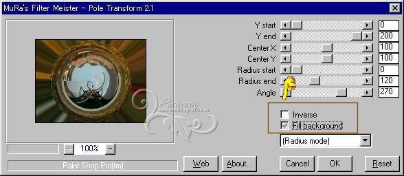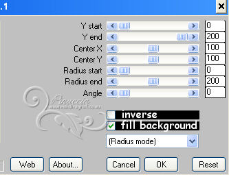 Con "fill background" selezionato il filtro trasforma in coordinate polari riempiendo lo sfondo con il colore del bordo dell'immagine sorgente.