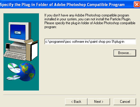 Quindi devi indicare la cartella plugins di un programma compatibile con Adobe Photoshop.