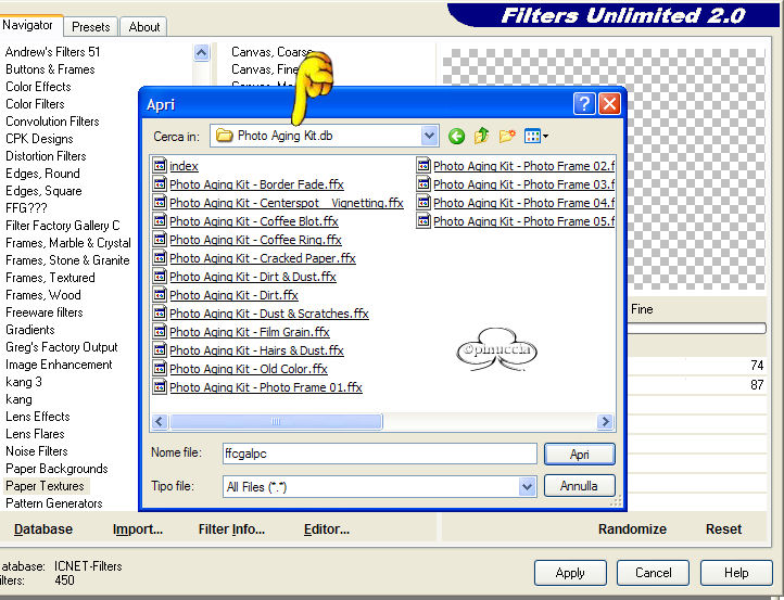 Quando il tutorial ti chiederà di usare Photo Aging, dovrai prima di tutto importarlo nel Filtro Unlimited.