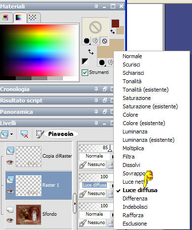 Nella paletta dei livelli cambia la modalità di miscelatura di questo livello in Luce netta.