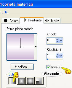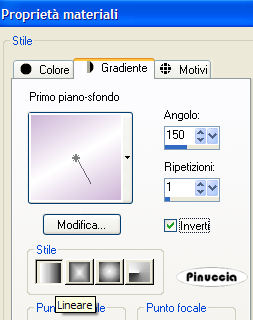 Passa il colore di primo piano a Gradiente di primo piano/sfondo con i seguenti settaggi:
