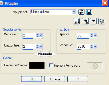 Effetti>Effetti 3D>Sfalsa ombra, con i seguenti settaggi: