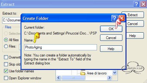 Dopo aver scelto la posizione, clicca sull'icona della cartella (manina rossa) per creare la nuova cartella, dove finiranno i files del filtro.