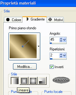 Passa il colore di primo piano a Gradiente di primo piano/sfondo, lineare, con i seguenti settaggi: