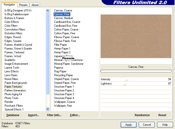 17. Effetti>Plugins>Filters Unlimited 2.0 - Paper Texture - Canvas fine: