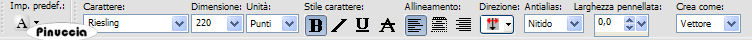font Riesling, con i seguenti settaggi: colore di sfondo nero.