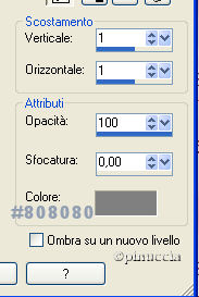 28. Effetti>Effetti 3D>Sfalsa ombra, con i seguenti settaggi, colore #808080.