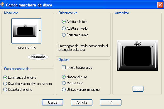 ![]() Traccia una linea ai lati del tube. Livelli>Converti in livello raster, così - se necessario - puoi spostare la linea,in modo che si trovi esattamente sul bordo del tube. ![]() Traccia la seconda linea sull'altro lato del tube. Livelli>Converti in livello raster e, se necessario, sistema la linea a sinistra del tube. ![]() Livelli>Unisci>Unisci giù. Attiva il livello Raster 2 (il livello del tube). Livelli>Duplica. Sposta questo livello a sinistra, vedi l'esempio finale.Livelli>Disponi>Sposta giù. Cambia la modalità di miscelatura di questo livello in Luminanza (Esistente), e abbassa l'opacità al 50%. Livelli>Duplica, e sposta questo livello sul lato destro.Abbassa l'opacità di questo livello al 40%. ![]() Attiva ora il livello superiore (livello Uniti): il livello con le due linee. Effetti>Effetti di trama>Rilievo. Effetti>Effetti 3D>Sfalsa ombra, con i seguenti settaggi, colore nero. ![]() Cambia la modalità di miscelatura di queseto livello in Luce diffusa. Livelli>Unisci>Unisci tutto. Immagine>Ruota a destra. Se stai usando PSP 9: Immagine>Ruota per gradi>90 gradi in senso orario Livelli>Nuovo livello raster. Attiva lo strumento Testo , crea come mobile, cerca e seleziona il font Perpetua Titling MT, dimensione 72, dovrai regolare la dimensione a seconda della lunghezza del testo e della versione di PSP che stai usando. scrivi "Respect" o il testo che preferisci. Effetti>Effetti 3D>Sfalsa ombra, con i settaggi precedenti. ![]() Effetti>Effetti di trama>Rilievo. Selezione>Nessuna selezione. Cambia la modalità di miscelatura di questo livello in Luce diffusa. Immagine>Ruota a sinistra. Se stai usando PSP 9: Immagine>ruota per gradi>90 gradi in senso antiorario Ripeti Immagine>Ruota a sinistra. Scrivi il tuo nome. Effetti>Effetti 3D>Sfalsa ombra, con i settaggi precedenti. Mantieni selezionato. Effetti>Effetti di trama>Rilievo. Selezione>nessuna selezione. Immagine>Ruota a destra. Aggiungi il tuo watermark. Livelli>Unisci>Unisci tutto. Immagine>Aggiungi bordatura, 2 pixels, simmetriche, con il colore di primo piano. Immagine>Aggiungi bordatura, 40 pixels, simmetriche, con il colore di sfondo. Seleziona questo bordo con la bacchetta magica ![]() ![]() Effetti>Effetti 3D>sfalsa ombra, con i seguenti settaggi, colore nero. ![]() Ripeti l'Effetto Sfalsa ombra, ma cambiando verticale e orizzontale a -3. Mantieni selezionato. Livelli>Nuovo livello raster. Riempi con il colore di primo piano.Livelli>Carica/Salva maschera>Carica maschera da disco. Cerca e carica la maschera 8MSKDW035, con i seguenti settaggi: ![]() Selezione>Nessuna selezione. Immagine>Aggiungi bordatura, 2 pixels, simmetriche, con il colore di primo piano. Salva in formato jpg. I tubes usati per questo esempio sono di Aimelle e Crystal. ![]() ![]() ![]() Se hai problemi o dubbi, o trovi un link non funzionante, o anche soltanto per un saluto, scrivimi. 14 Agosto 2007 |