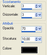 qui puoi trovare qualche risposta ai tuoi dubbi. Se l'argomento che ti interessa non č presente, ti prego di segnalarmelo. Occorrente: Materiale qui Apri i tubes in PSP. Apri una nuova immagine trasparente 700x500 pixels. Selezione>Seleziona tutto. Attiva il file di sfondo "elegant_creampaper" e vai a Modifica>Copia. Torna al tuo lavoro e vai a Modifica>Incolla>Incolla nella selezione. Selezione>Modifica>Contrai di 25 pixels: ![]() Attiva il file di sfondo "elegant_creampaper2" e vai a Modifica>Copia. Torna al tuo lavoro e vai a Modifica>Incolla>Incolla nella selezione. Effetti>Effetti 3D>Sfalsa ombra, con i seguenti settaggi, colore nero: ![]() Ripeti l'Effetto Sfalsa ombra, cambiando verticale e orizzontale a -3. Selezione>Nessuna selezione. Attiva il tube "patrymists_06_Music_09" e vai a Modifica>Copia. Torna al tuo lavoro e vai a Modifica>Incolla>Incolla come nuovo livello. Spostalo a destra.Abbassa l'opacitā di questo livello al 75%. piccolo consiglio: se a volte "lotti" con il cursore del livello, puoi abbreviare l'operazione andando a Livelli>Proprietā e inserendo manualmente il valore: ![]() Attiva il tube della donna "Kat0434" e vai a Modifica>Copia. Torna al tuo lavoro e vai a Modifica>Incolla>Incolla come nuovo livello. Spostalo a sinistra.Attiva il file della cornice "Lintframe" e vai a Modifica>Copia. Torna al tuo lavoro e vai a Modifica>Incolla>Incolla come nuovo livello. Attiva lo strumento Gomma ![]() Posizionati sul livello della donna (Raster 3), e cancella la parte che si vede sotto la cornice. ![]() Posizionati nuovamente sul livello superiore. Attiva il tube "Heartline" e vai a Modifica>Copia. Torna al tuo lavoro e vai a Modifica>Incolla>Incolla come nuovo livello. Spostalo nell'angolo in alto a destra.Attiva il tube "Button" e vai a Modifica>Copia. Torna al tuo lavoro e vai a Modifica>Incolla>Incolla come nuovo livello. Spostalo in alto a sinistra.Livelli>Duplica. Sposta il secondo bottone in basso a destra.Attiva "Scraptube60" e vai a Modifica>Copia. Torna al tuo lavoro e vai a Modifica>Incolla>Incolla come nuovo livello. Spostalo nell'angolo in basso a sinistra.Effetti>Effetti 3D>Sfalsa ombra, con i settaggi precedenti. ![]() Attiva il tube "bigstitch" e vai a Modifica>Copia. Torna al tuo lavoro e vai a Modifica>Incolla>Incolla come nuovo livello. Posizionalo in alto, vedi l'esempio finale.Attiva il tube di testo e vai a Modifica>Copia. Torna al tuo lavoro e vai a Modifica>Incolla>Incolla come nuovo livello. Posiziona il testo come preferisci.Nella paletta dei livelli io ho spostato questo livello sotto il livello dei cuori Livelli>Unisci>Unisci tutto. Aggiungi il tuo nome e/o il tuo watermark. io ho usato il font Urban qui, dimensione 55, con PSP X. La scelta della dimensione dipende dalla lunghezza del nome e anche dalla versione di PSP che stai usando. Parlando di pixels (non di punti, che si trovano soltanto in PSP X), il risultato cambia da una versione all'altra. Ecco nella tabella l'esempio, in pixels, per il font Arial Black. ![]() Ridimensiona, se vuoi, e salva in formato jpg. ![]() Se hai problemi o dubbi, o trovi un link non funzionante, o anche soltanto per un saluto, scrivimi. Gennaio 2007 |