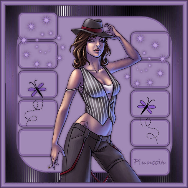 qui puoi trovare qualche risposta ai tuoi dubbi. Se l'argomento che ti interessa non è presente, ti prego di segnalarmelo. Questo tutorial è stato scritto con PSP Corel 11, ma può essere eseguito anche con le precedenti versioni. Per tradurlo, ho usato PSP X. Occorrente: Materiale qui Filtri: Graphics Plus - Cross Shadow qui Tramages qui I filtri Tramages si usano importati in Filters Unlimited (come importare un filtro in Unlimited vedi qui ma funzionano anche da soli 1. Apri una nuova immagine trasparente 600 x 600 pixels. Scegli tre colori dal tube. Io ho usato come colore di primo piano il colore chiaro #A28AB6, e come colore di sfondo il colore un altro colore chiaro #886AA2. In più un terzo colore scuro #493858. 2. Attiva lo strumento Selezione , rettangolo arrotondato, con i seguenti settaggi:![]() e traccia un rettangolo come nell'esempio: ![]() Riempi la selezione con il colore scuro #493858.Selezione>Modifica>Contrai - 2 pixels. Riempi la selezione con il colore di sfondo #886AA2.Selezione>modifica>Contrai - 5 pixels. Riempi la selezione con il colore di primo piano #A28AB6.Selezione>Deseleziona. 3. Livelli>Nuovo livello raster. Attiva nuovamene lo strumento Selezione , rettangolo arrotondato,con i settaggi usati al punto 2. Traccia un piccolo rettangolo come nell'esempio: ![]() Riempi la selezione con il colore scuro #493858.Selezione>Modifica>Contrai - 2 pixels. Riempi la selezione con il colore di sfondo #886AA2.Selezione>modifica>Contrai - 5 pixels. Riempi la selezione con il colore di primo piano #A28AB6.Selezione>Deseleziona. 4. Livelli>Duplica, per 4 volte. Alla fine avrai 5 rettangoli da posizionare come nell'esempio: ![]() Chiudi il livello di sfondo e posizionati su uno degli altri livelli. Livelli>Unisci>Unisci visibile. Effetti>Effetti 3D>Sfalsa ombra, con i seguenti settaggi, colore dell'ombra #493858: ![]() Adesso puoi rendere nuovamente visibile il livello di sfondo. 5. Livelli>Duplica. Immagine>Rifletti. Immagine>Capovolgi. Dovresti avere questo: ![]() 6. Livelli>Nuovo livello raster. Riempi con il colore scuro #493858.Effetti>Plugins>Graphics Plus - Cross Shadow, con i settaggi standard. ![]() Effetti>Plugins>Tramages - Two the Line, con i settaggi standard. ![]() Livelli>Disponi>Porta sotto. 7. Apri il tube "sternlila", e vai a Modifica>Copia. Torna al tuo lavoro e vai a Modifica>Incolla come nuovo livello. Sposta il tube nel primo rettangolo in alto a destra.Livelli>Duplica. Immagine>Rifletti, e sistema il tube come nel mio esempio.Livelli>Unisci>Unisci giù. Effetti>Effetti 3D>Sfalsa ombra, con i settaggi precedenti. 8. Apri il tube "Butterflylila", e vai a Modifica>Copia. Torna al tuo lavoro e vai a Modifica>Incolla come nuovo livello. Sposta il tube a destra, sotto il tube precedente.Livelli>Duplica. Immagine>Rifletti. Sistema il tube, vedi il mio esempio per controllare la posizione.Livelli>Unisci>Unisci giù. Effetti>Effetti 3D>Sfalsa ombra, con i settaggi precedenti (punto 4). 9. Apri il tube "AceSMTubes" e vai a Modifica>Copia. Torna al tuo lavoro e vai a Modifica>Incolla come nuovo livello. Immagine>Ridimensiona, all'80%, tutti i livelli non selezionato. Spostalo in basso sul bordo.Effetti>Effetti 3D>Sfalsa ombra, con i settaggi precedenti (punto 4). 10. Attiva lo strumento Testo e scrivi il tuo nome o un testo.Se vuoi, aggiungi il tuo watermark. 11. Immagine>Aggiungi bordatura, 2 pixels, simmetriche, con il colore #493858. Immagine>Aggiungi bordatura, 5 pixels, simmetriche, con il colore #886AA2. Immagine>Aggiungi bordatura, 5 pixels, simmetriche, con il colore #A28AB6. Immagine>Aggiungi bordatura, 5 pixels, simmetriche, con il colore #886AA2. Immagine>Aggiungi bordatura, 2 pixels, simmetriche, con il colore #493858. Hai finito. Salva in formato jpg. ![]() Se hai problemi o dubbi, o trovi un link non funzionante, o anche soltanto per un saluto, scrivimi. 23 Maggio 2008 |