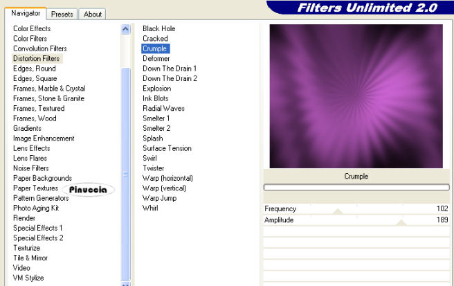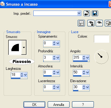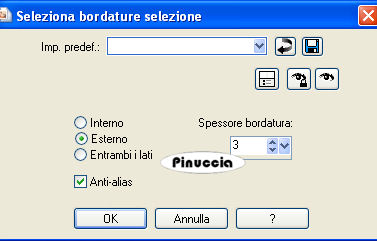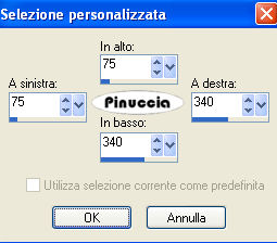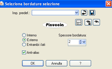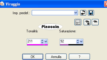 qui puoi trovare qualche risposta ai tuoi dubbi. Se l'argomento che ti interessa non è presente, ti prego di segnalarmelo. Questo tutorial è stato scritto con PSP Corel X2, ma può essere eseguito anche con le precedenti versioni. Per tradurlo, ho usato PSP X. Occorrente: Materiale qui Filtri: Graphics Plus qui Filters Unlimited qui Ti servirà anche Animation Shop qui 1. Apri una nuova immagine trasparente 720 x 600 pixels. Scegli due colori dal tuo tube. Io ho scelto come colore di primo piano il colore scuro #5A2C5D, e come colore di sfondo il colore chiaro #C05D9E. 2. Attiva lo strumento Selezione ![]() clicca sull'icona Selezione personalizzata ![]() e imposta i seguenti settaggi: ![]() Riempi la selezione con il colore chiaro di sfondo.Selezione>Modifica>Seleziona bordature selezione: ![]() Riempi la selezione con il colore scuro di primo piano.Effetti>Effetti 3D>Smusso a incasso. ![]() Selezione>Deseleziona. 3. Selezione>Seleziona tutto. Selezione>Mobile. Selezione>Immobilizza. Selezione>Modifica>Contrai - 3 pixels. 4. Livelli>Nuovo livello raster. Apri il tube "clarey_berryblush_doodle3" e vai a Modifica>Copia. Torna al tuo lavoro e vai a Modifica>Incolla nella selezione. Selezione>Deseleziona. 5. Regola>Tonalità e saturazione>Viraggio. ![]() Effetti>Effetti 3D>Sfalsa ombra, con i seguenti settaggi. ![]() 6. Livelli>Unisci>Unisci visibile. Effetti>Effetti 3D>Sfalsa ombra, come al punto 5. Livelli>Duplica. Immagine>Rifletti. Immagine>Capovolgi. Posiziona i due rettangoli come nell'esempio.![]() 7. Livelli>Unisci>Unisci visibile. Modifica>Taglia. Modifica>Incolla come nuovo livello. In questo modo avrai i rettangoli esattamente al centro della tua immagine. 8. Livelli>Nuovo livello raster. Selezione personalizzata ![]() ![]() Riempi con il colore chiaro di sfondo.9. Selezione>Modifica>Seleziona bordature selezione: ![]() Riempi con il colore scuro di primo piano.Effetti>Effetti 3D>Sfalsa ombra, come al punto 2. Selezione>Deseleziona. 10. Apri il tube "herzen" e vai a Modifica>Copia. Torna al tuo lavoro e vai a Modifica>Incolla come nuovo livello. Immagine>Ridimensiona, una volta al 70% e una volta al 90%, tutti i livelli non selezionato. Sposta i cuori nell'angolo in alto a sinistra del piccolo rettangolo.Effetti>Effetti 3D>Sfalsa ombra, come al punto 5. Livelli>Unisci>Unisci giù. 11. Immagine>Ruota per gradi - 45 gradi a sinistra. ![]() Livelli>Duplica. Immagine>Rifletti. Attiva il livello della prima immagine. Livelli>Duplica. Immagine>Capovolgi. Attiva nuovamente il livello della prima immagine. Livelli>Duplica. Immagine>Rifletti. Immagine>Capovolgi. Dovresti avere questo: ![]() 12. Livelli>Unisci>Unisci giù, e ripeti in modo da avere i quadrati con i cuori su un unico livello. Effetti>Effetti 3D>Sfalsa ombra, come al punto 5. 13. Ancora Livelli>Unisci>Unisci giù. E avrai i quadrati e i due rettangoli su un unico livello. Livelli>Duplica. Effetti>Effetti di trama>Mosaico antico, con i seguenti settaggi: ![]() Livelli>Disponi>Sposta giù. 14. Attiva il livello inferiore e riempilo con il colore scuro di primo piano.Effetti>Plugins>Graphics Plus - Cross Shadow, con i settaggi standard. ![]() Effetti>Plugins>Filters Unlimited - Distortion Filter - Crumple, con i settaggi standard. ![]() 15. Apri il tube "GDT~Chessy" e vai a Modifica>Copia. Torna al tuo lavoro e vai a Modifica>Incolla come nuovo livello. Se necessario, ridimensiona il tube. Effetti>Effetti 3D>sfalsa ombra, con i seguenti settaggi: ![]() 16. Attiva lo strumento Testo ![]() e scrivi il tuo nome o un testo sull'immagine. Se vuoi, aggiungi il tuo watermark. 17. Immagine>Aggiungi bordatura, 1 pixel, simmetriche, con il colore #C05D9E. Immagine>Aggiungi bordatura, 5 pixels, simmetriche, con il colore #5A2C5D. Immagine>Aggiungi bordatura, 5 pixels, simmetriche, con il colore #C05D9E. Immagine>Aggiungi bordatura, 5 pixels, simmetriche, con il colore #5A2C5D. Immagine>Aggiungi bordatura, 1 pixel, simmetriche, con il colore #C05D9E. 18. Modifica>Copia. Apri Animation Shop. Clicca con il tasto destro del mouse sullo spazio vuoto e Incolla come nuova animazione. ![]() Modifica>Duplica, e ripeti finchè non avrai 12 fotogrammi. Clicca sul primo fotogramma per selezionarlo e vai a Modifica>Seleziona tutto. (oppure premi sulla tastiera la combinazione di tasti ctrl+A). Apri BlingCircle1sPT. Elimina il primo fotogramma nero e avrai un'animazione composta da 12 fotogrammi. Clicca sul primo fotogramma per selezionarlo e vai a Modifica>Seleziona tutto (ctrl+A) e poi Modifica>Copia (ctrl+c). Attiva il tuo lavoro e vai a Modifica>Incolla>Incolla nel fotogramma selezionato (Ctrl+E). Posiziona l'animazione nel rettangolo inferiore e, quando sei certo della posizione, rilascia il tasto del mouse. Controlla il risultato cliccando su Visualizza e salva in formato gif.![]() Se hai problemi o dubbi, o trovi un link non funzionante, o anche soltanto per un saluto, scrivimi. 15 Giugno 2008 |